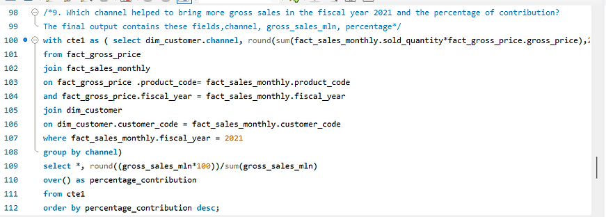 Query : Which channel helped to bring more gross sales in the fiscal year 2021 and the percentage of contribution?