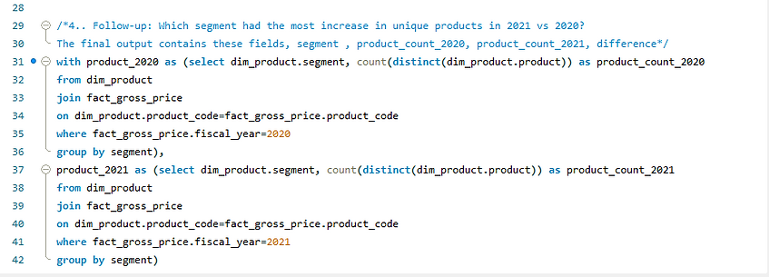 Query : Follow-up: Which segment had the most increase in unique products in 2021 vs 2020?